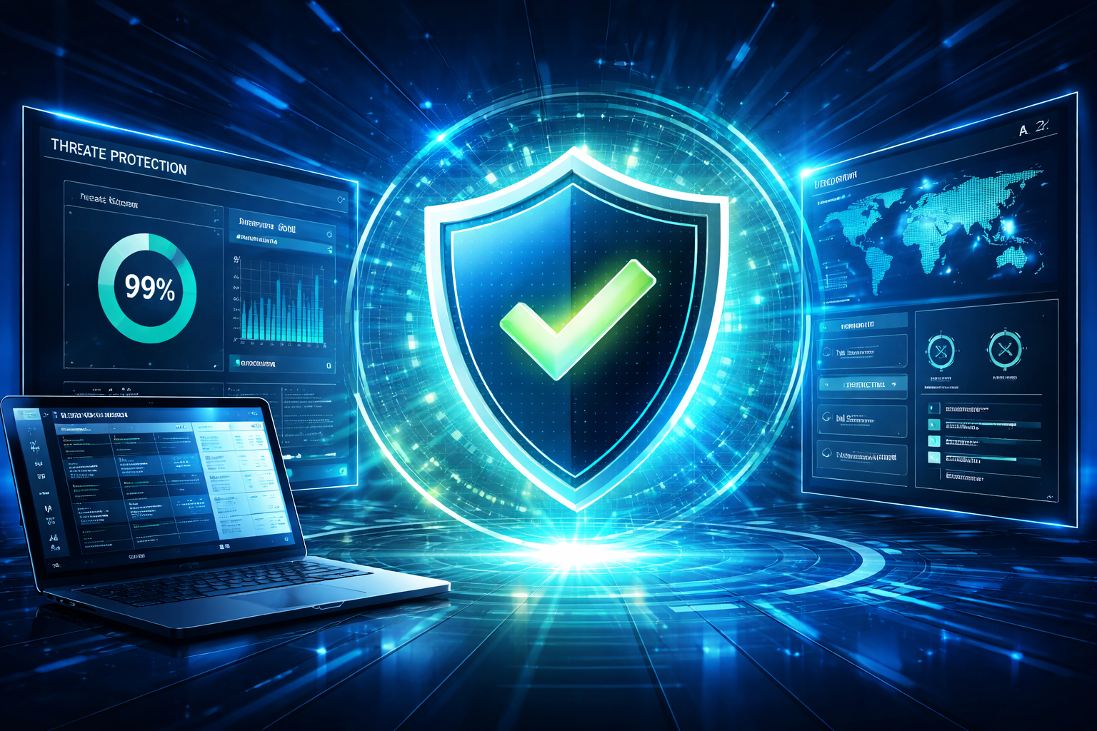 AI-powered engine blocks malware, ransomware, and phishing instantly.
